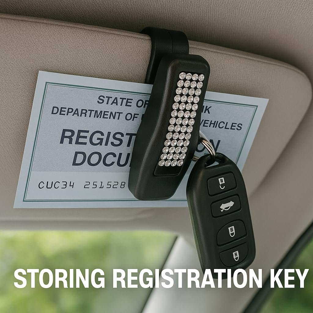 This bling sunglasses holder for car use can be a practical accessory for personal use or a thoughtful gift for friends or family members who spend time driving. Its straightforward design allows it to be used in a variety of vehicles, including cars, SUVs, and trucks. The eyeglass holder for car visor placement offers a balance of function and decorative appeal, making it suitable for drivers looking for both utility and style. Whether used as a sunglasses clip for car visor storage or as a general car eyeglass holder, this accessory provides a simple way to keep eyewear organized and accessible. The Bling Visor Clip offers a convenient storage option designed to complement your vehicle's interior while supporting everyday driving needs.