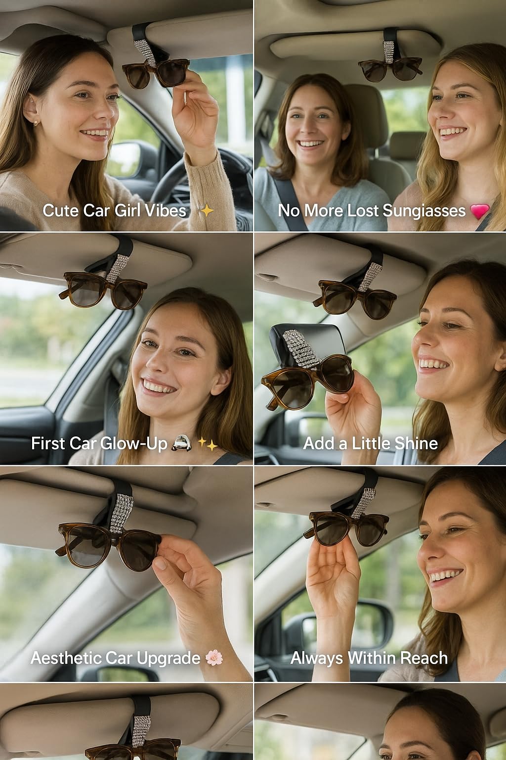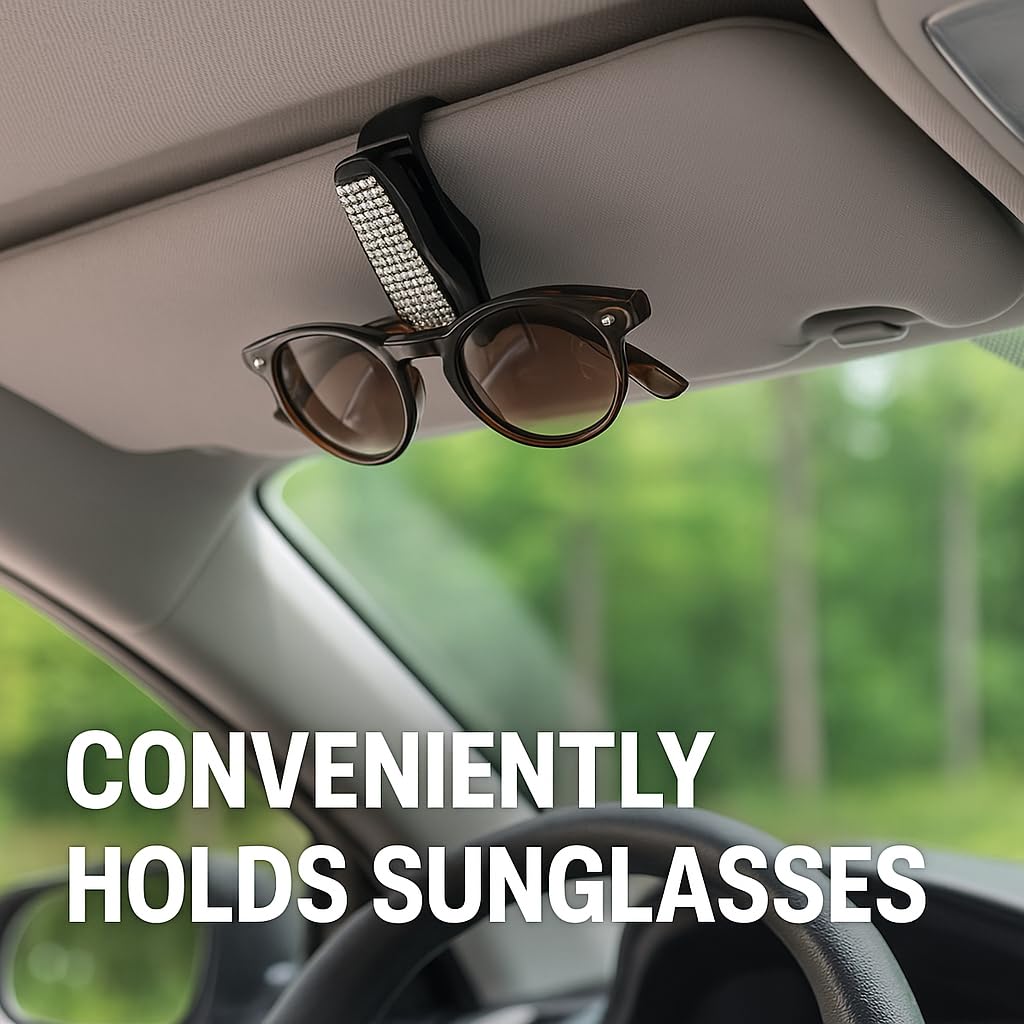 Introducing the Bling Visor Clip for Sunglasses, a thoughtfully designed car accessory created to help keep eyewear organized and easily accessible while driving. This sunglasses holder is intended to securely hold sunglasses or eyeglasses on your car's sun visor, helping reduce clutter and keeping your eyewear within reach whenever needed. The decorative bling detailing adds a subtle, stylish accent to your vehicle's interior while maintaining a clean and practical appearance.