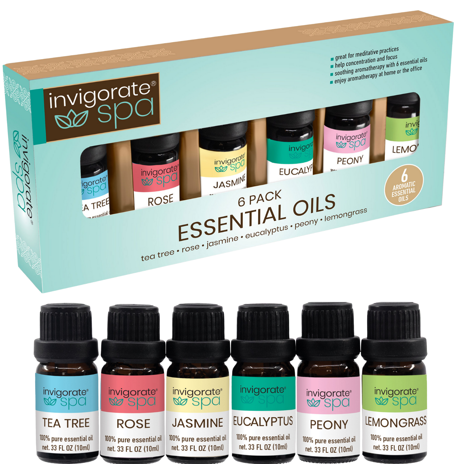 Discover a premium 6 Pack Essential Oils Set, carefully crafted for everyday home and office fragrance use. Designed for use with an essential oil diffuser, these essential oils variety pack helps create a fresh, pleasant atmosphere in any space. Each set includes six 10 ml (0.33 fl oz) bottles, offering a versatile selection of popular essential oil scents for daily enjoyment. This essential oils for diffuser set features a balanced variety of plant-based fragrances, including lavender oil, eucalyptus oil, lemongrass oil, tea tree oil, rose oil, and jasmine oil. Each oil delivers a distinct aroma, allowing you to customize your environment based on your preference. Ideal for use in aroma diffusers, humidifiers, oil burners, and air purifiers, these oils help enhance indoor fragrance naturally.
